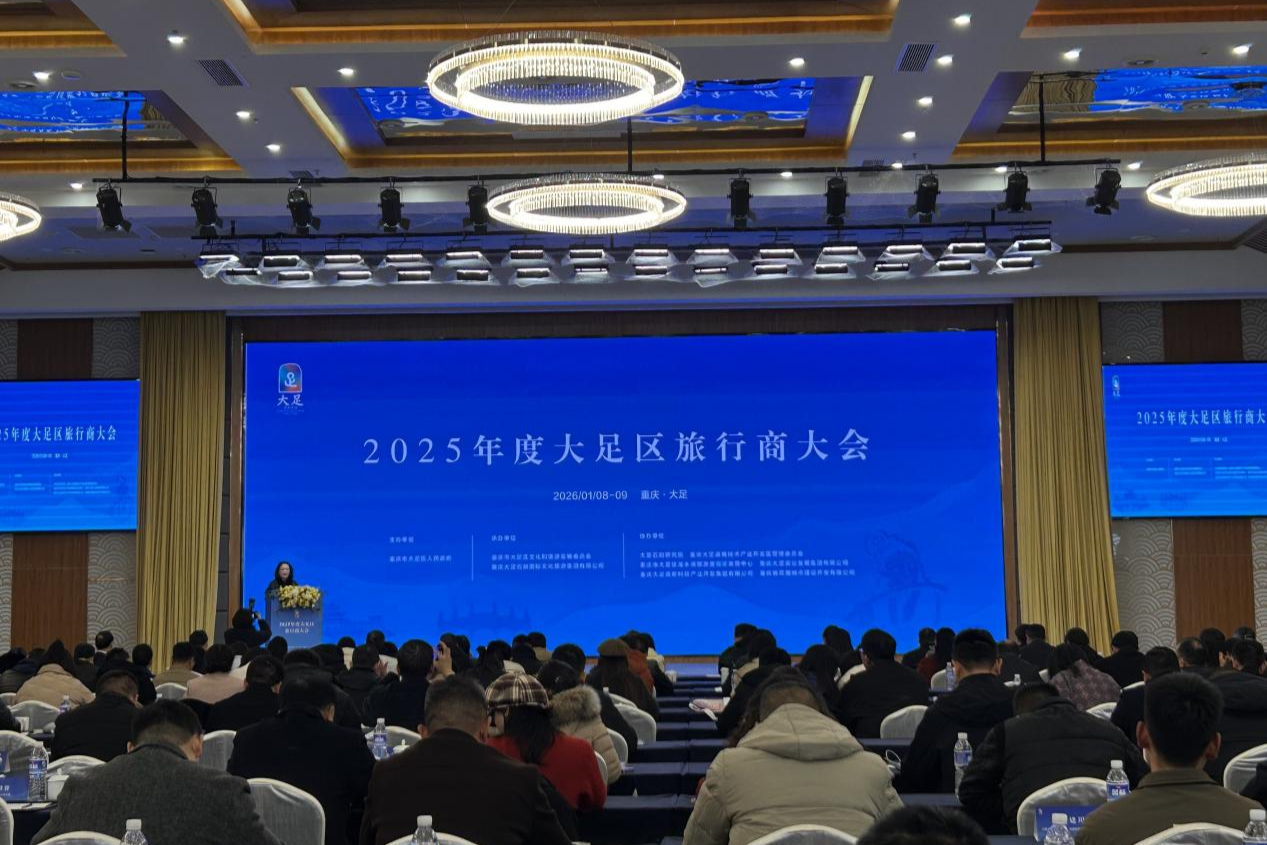 1月8日,2025年度大足区旅行商大会在重庆大足石刻学术报告厅举行。大会不仅发布“石中三界 石外桃源”资阳大足石窟石刻文物主题游径,还同步推出景区场景升级、文旅产品上新等多项举措,以川渝联动为核心,以业态创新为支撑,全面激活成渝地区双城经济圈文旅消费潜力,为游客带来兼具文化深度与体验温度的旅游新选择。