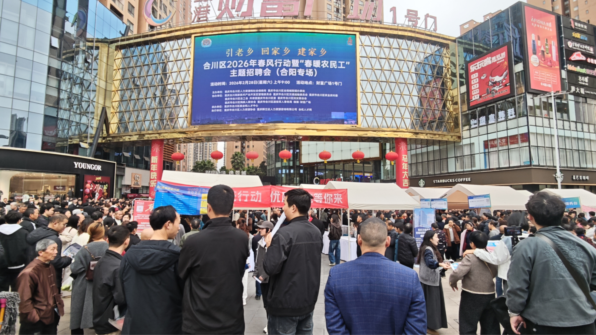 2月28日,重庆市合川区2026年春风行动暨“春暖农民工”主题招聘会(合阳专场)在合川财富广场1号门举办。本次活动由合川区人力社保局、合阳城街道办事处联合主办,以“引老乡、回家乡、建家乡”为核心主题,精准聚焦重点就业群体,现场汇聚162家优质用人单位,释放就业岗位超5100个,吸引逾8600人次进场求职,初步达成就业意向1340人,创下近年来合川区单场线下招聘会意向签约人数新高。