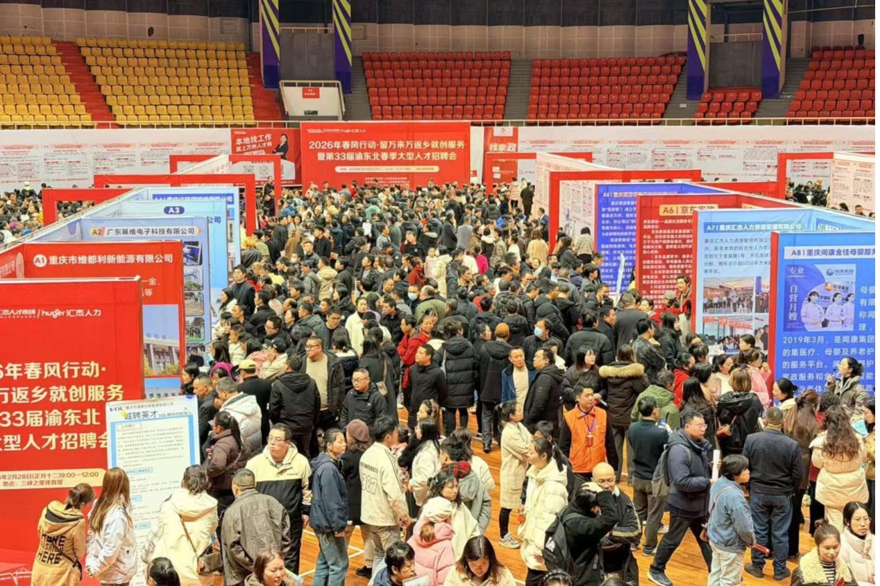 近日,由重庆市万州区人力资源和社会保障局指导的2026年春风行动·留万来万返乡就创服务暨第33届渝东北春季大型人才招聘会在三峡之星体育馆如期举行。