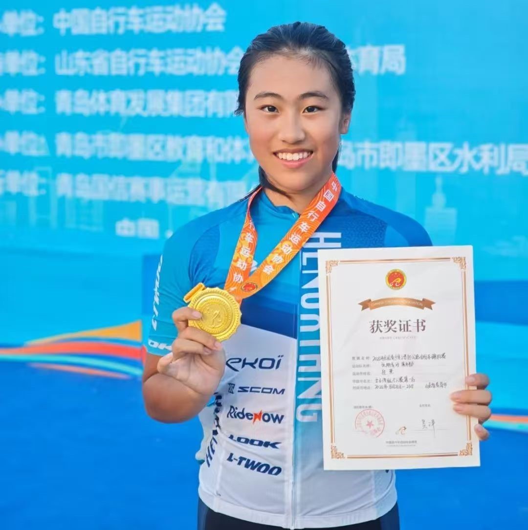 8月23日,国内最高水平青少年自行车赛事——2025年全国青少年U系列公路自行车锦标赛在青岛市即墨区收官。重庆七中(重庆大学附中)健儿段萱参与其中,在赛道上挥洒青春、全力角逐,凭借出色表现获女子丙组冠军。