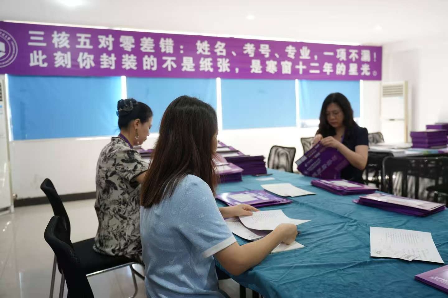 在重庆电子科技职业大学录取现场,工作人员正在进行录取通知书的封装工作,办公室的墙上挂着印有“三核五对零差错:姓名、考号、专业,一项不漏!”字样的横幅。重庆电子科技职业大学招生就业处负责人邓小龙介绍,“录取通知书的封装都是严格进行‘三核五对’的操作,即是对学生的姓名、考号、专业进行3次核对,对封装的5项内容逐一进行检查,确保不出差错。”