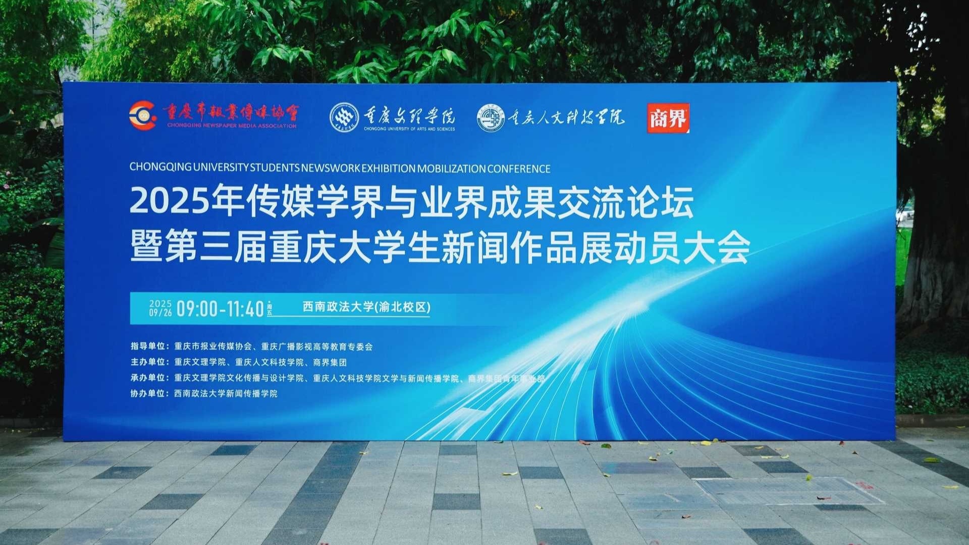 9月26日,“传媒学界与业界成果交流论坛暨第三届重庆大学生新闻作品展(以下简称:新闻展)动员大会”在西南政法大学(渝北校区)举行。来自行业协会、市内外高校及行业媒体的60余位专家与嘉宾齐聚现场,围绕传媒人才培养创新、教学成果转化、传媒实践案例分享等核心议题展开深度对话,为重庆传媒教育与行业协同发展注入新活力。