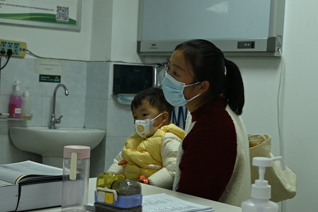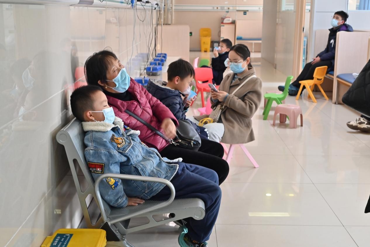 正在输液的患儿和陪同家长(央广网发 杨丹 摄)