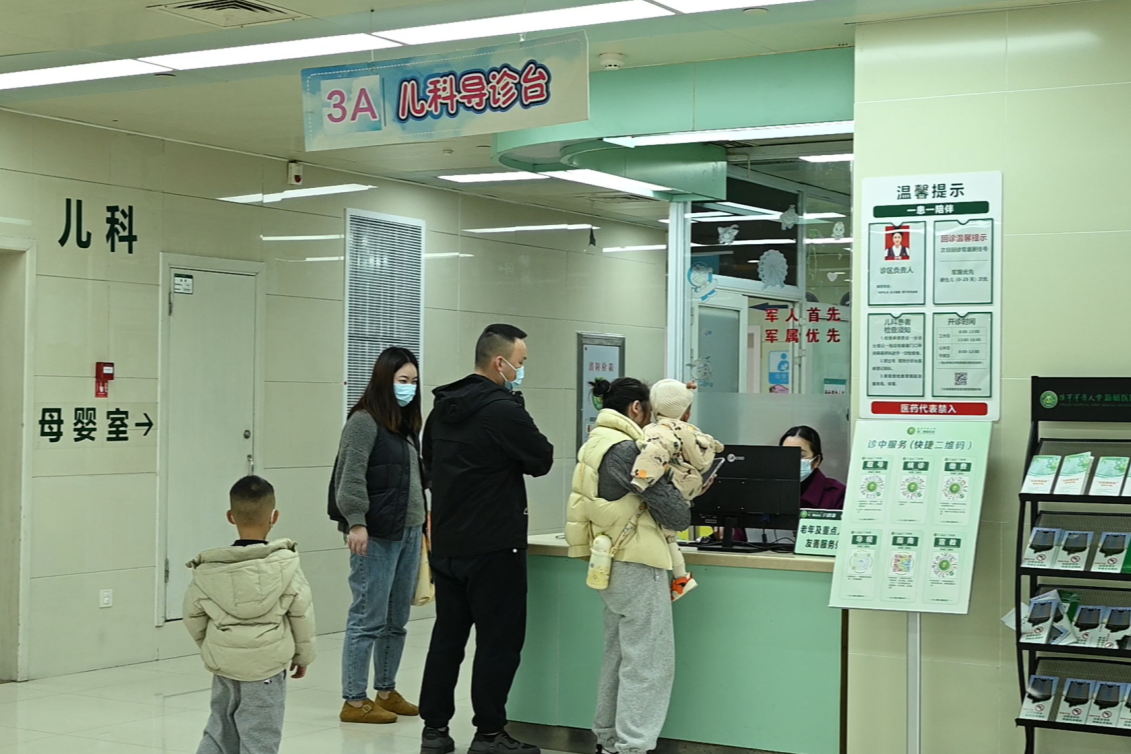 在陆军军医大学第二附属医院的儿科走廊和候诊区内,挤满了怀抱孩子的家长们。医护人员忙碌地穿梭其间,孩子们的咳嗽声、哭闹声与家长们急切安抚的声音交织成一片。“孩子高烧到39.5度,还一直说浑身疼,我们都是急匆匆地赶往医院。”在医院的输液区,一位家长眉头紧皱,表示孩子班上有好几位同学都出现了类似症状。