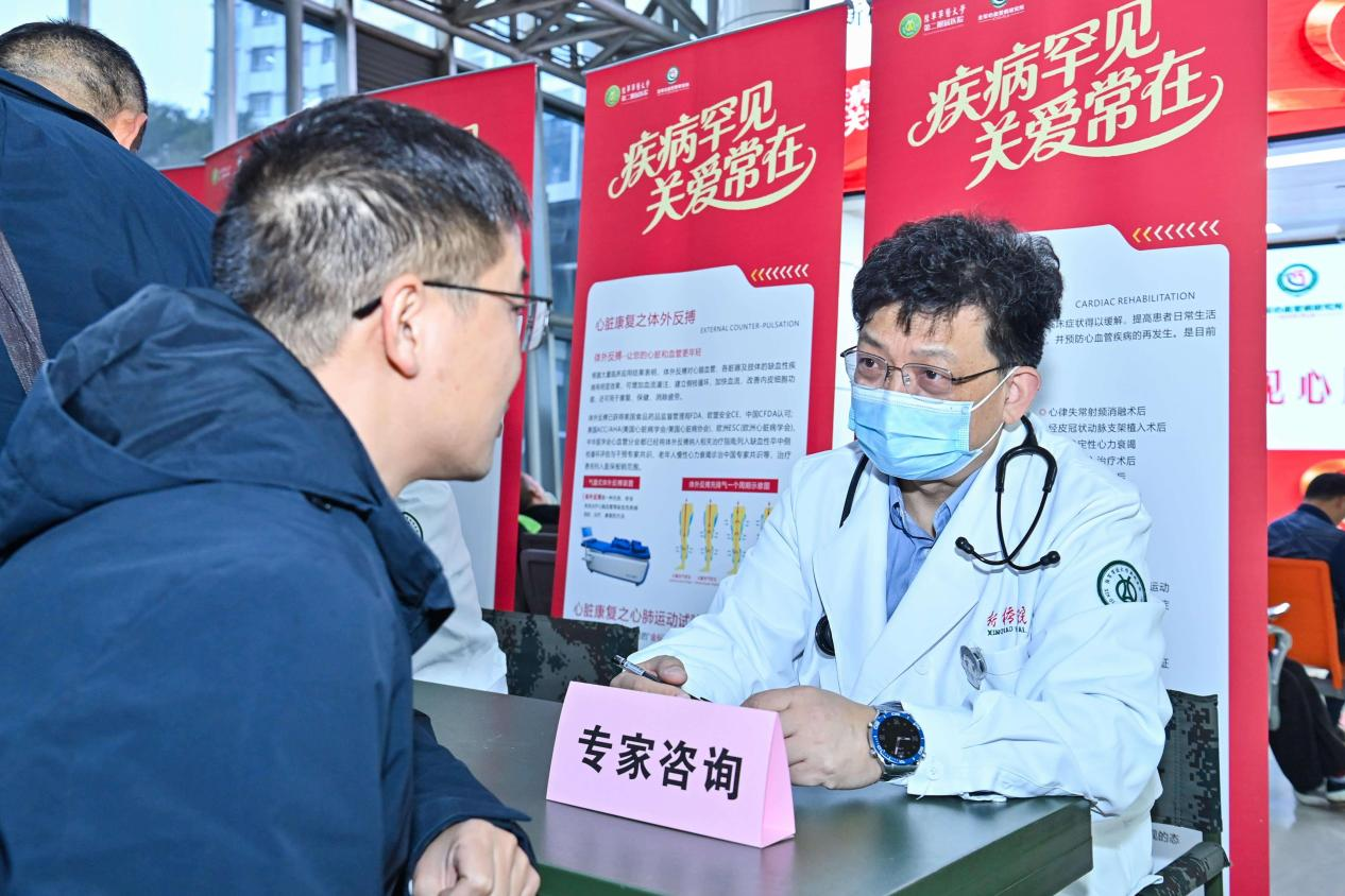 2月28日是国际罕见病日。2月27日,陆军军医大学新桥医院心血管内科、心血管外科两大强势学科“双剑合璧”,在门诊大厅举办义诊活动。平时一号难求的十余位专家齐聚现场,用一场高质量的“心脏罕见病”义诊活动,为患者揭开罕见心脏病的“潜伏密码”。