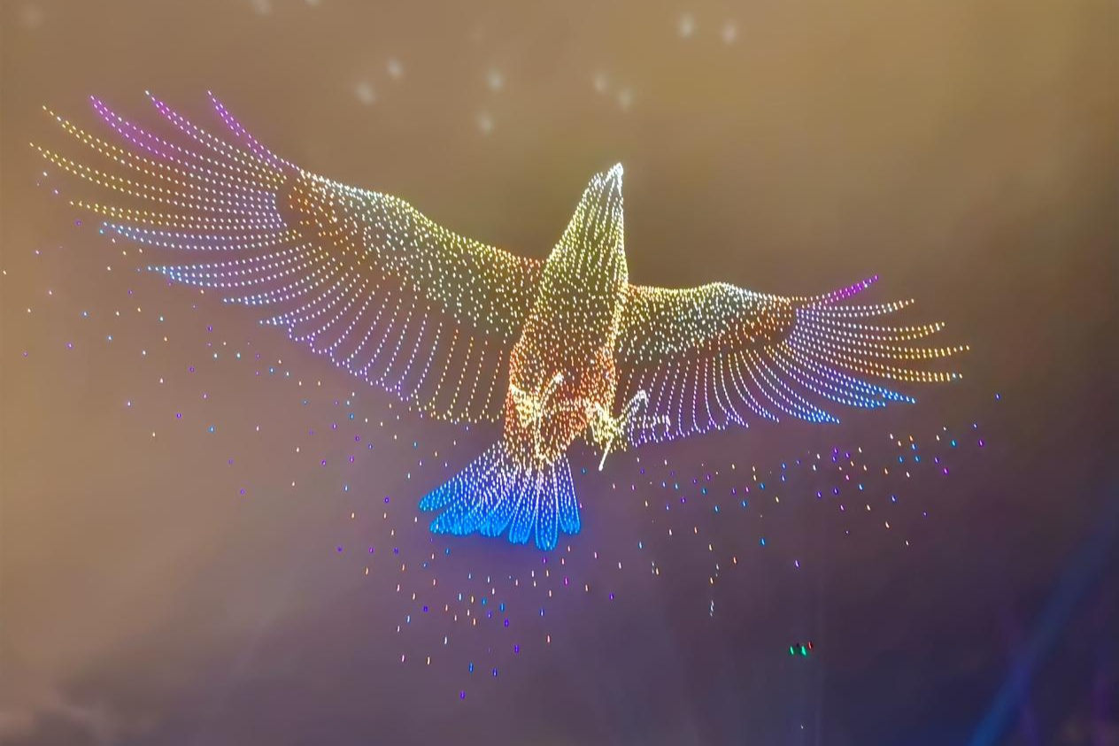 无人机编队化作“振翅凌云”的冲天鹰(央广网发 何春艳 摄)