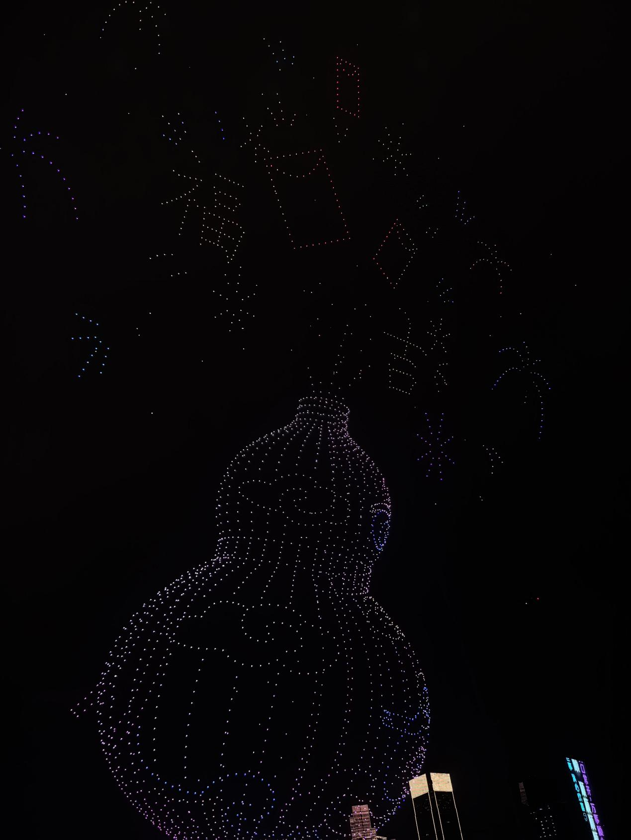 跨年夜展演现场,当那些充满美好寓意的祝福语和精致的祝福图案在天空中亮起,现场如潮的欢呼声此起彼伏,市民游客们纷纷举起手机、相机记录下这震撼一幕,快门声与喝彩声交织回荡。