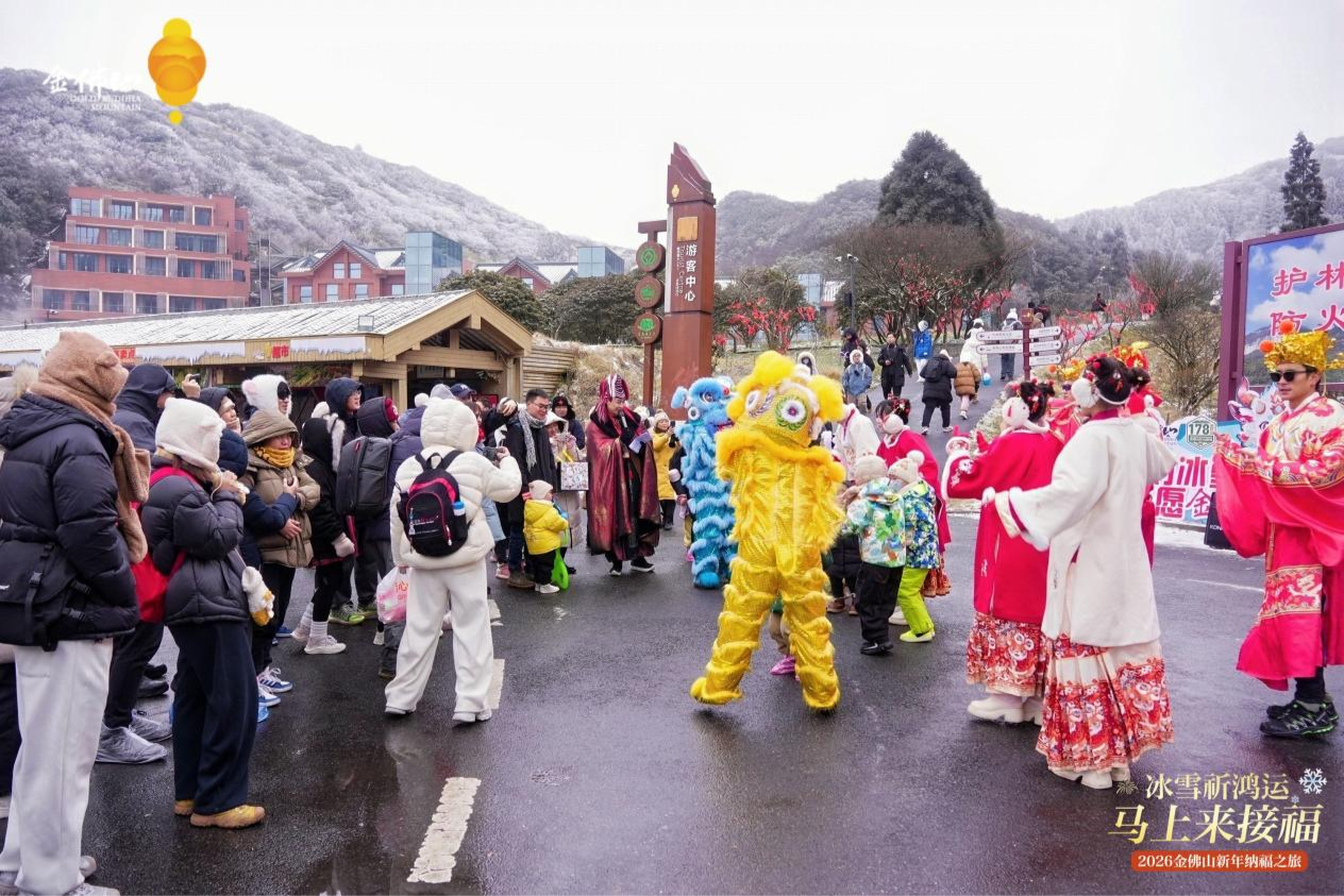 2026年元旦假期,重庆南川金佛山景区开展“冰雪祈鸿运·马上来接福”主题活动,为游客呈现一场融合国风巡游互动、非遗集市、冰雪盛宴、山海经主题灯展的新年纳福之旅,让游客在祈福氛围中喜迎新年。