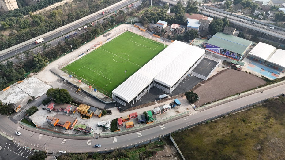 2024年6月,博皓运动中心破土动工。项目打破传统运营模式,打造集训练、赛事、商业于一体的综合户外运动中心。目前,一期、二期已建成包含足球场、篮球场、羽毛球场及配套停车场在内的设施并投入使用,三期科技场馆(如配备鹰眼系统的网球场、5G+AI无人机训练基地)也已落地。