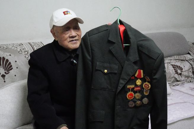 如今,郝顺珍已是百岁高龄,却依旧身板硬朗、神采奕奕。在采访时,他不用旁人搀扶,也不愿倚靠拐杖,亲自引着记者走进屋内,郑重捧出那件挂满勋章的军装。这身军装,无声地定格着他一生的峥嵘岁月。