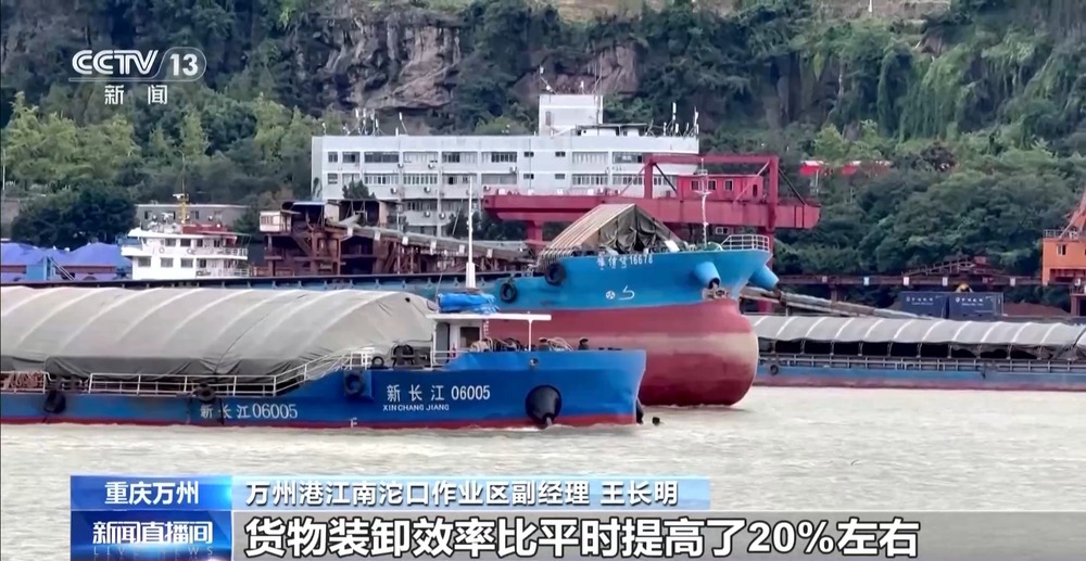 万州港江南沱口作业区副经理王长明:现在水深增加了一二十米,万州港成了深水良港,货物装卸效率比平时提高了20%左右。