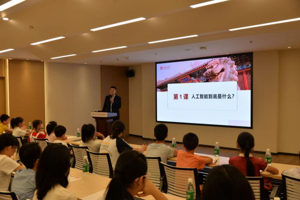在位于高新区科学谷的北京大学重庆大数据研究院,研究员步一以“对话AI!开启我的第一个智能小伙伴”为主题,为孩子们带来一堂生动的人工智能科普课。