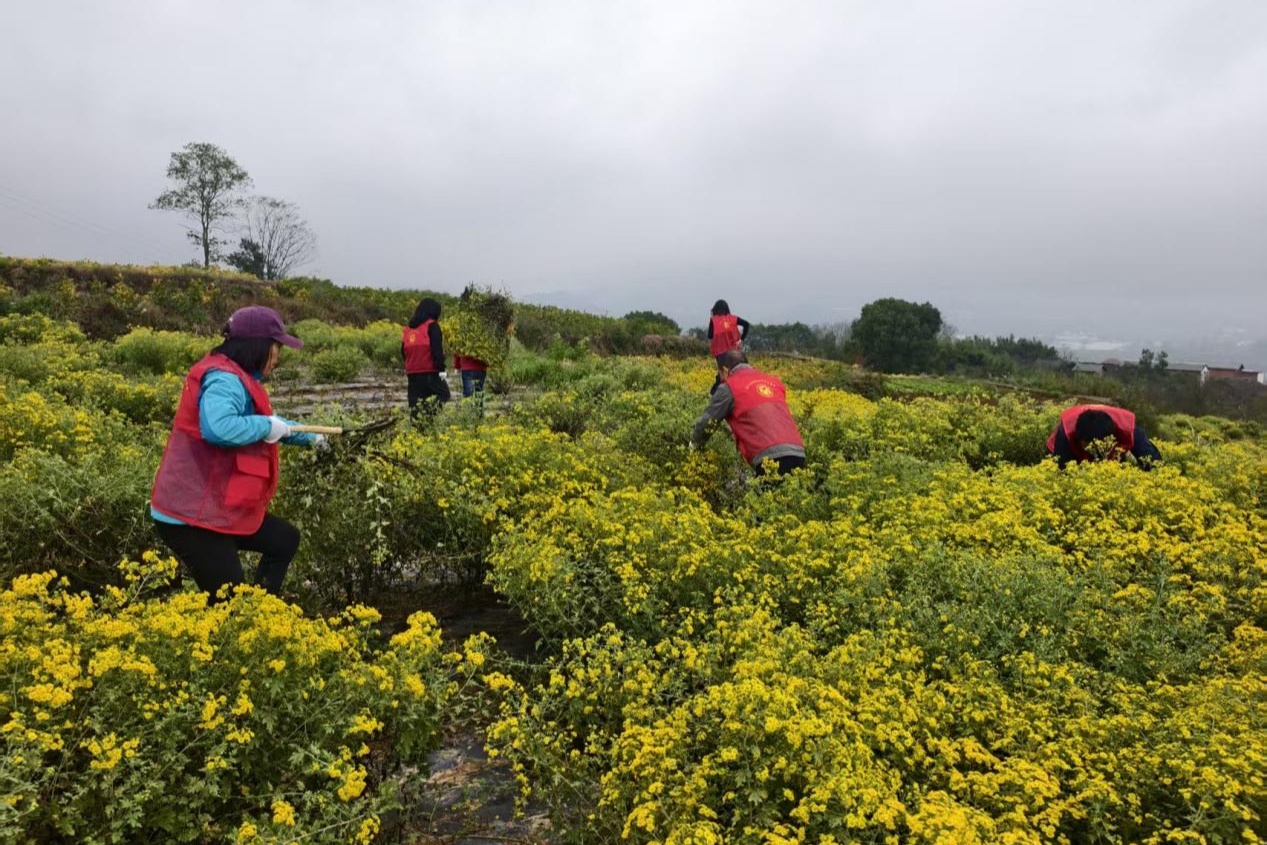 工作人员采收野菊花(綦江区供销合作社供图)