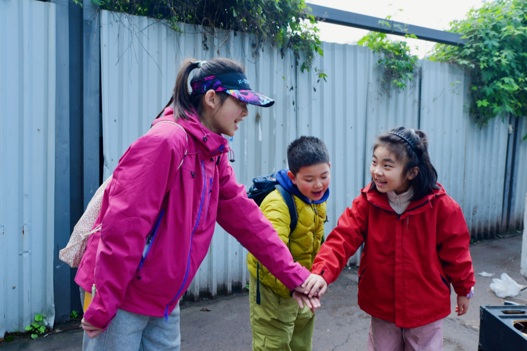 踩点前,三位小朋友互相加油(主办方供图)
