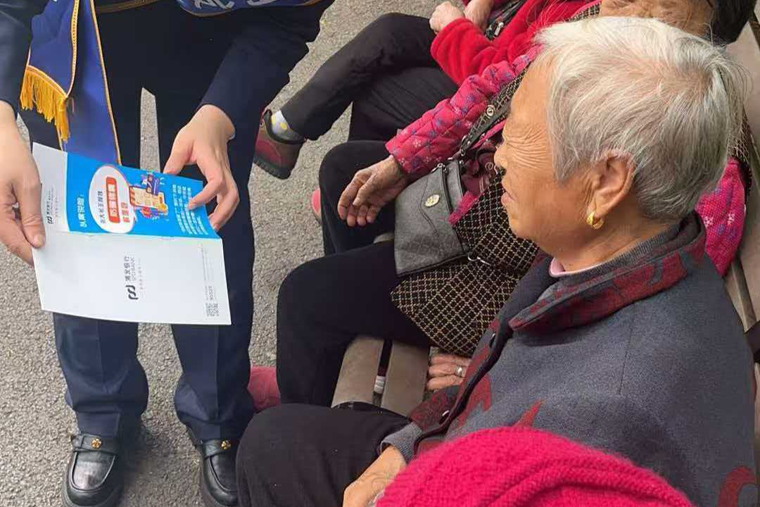 工作人员向社区老年居民普及金融知识(浦发银行供图)