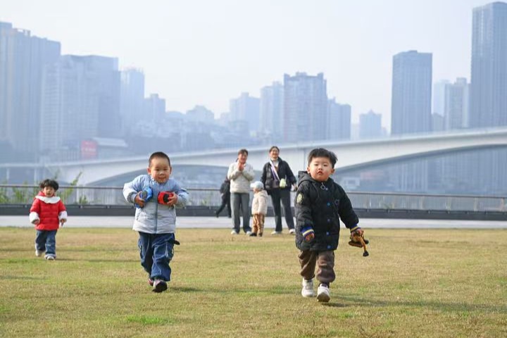 2026年1月5日,小朋友在重庆两江新区江北嘴江滩公园玩耍。新华社记者王全超 摄