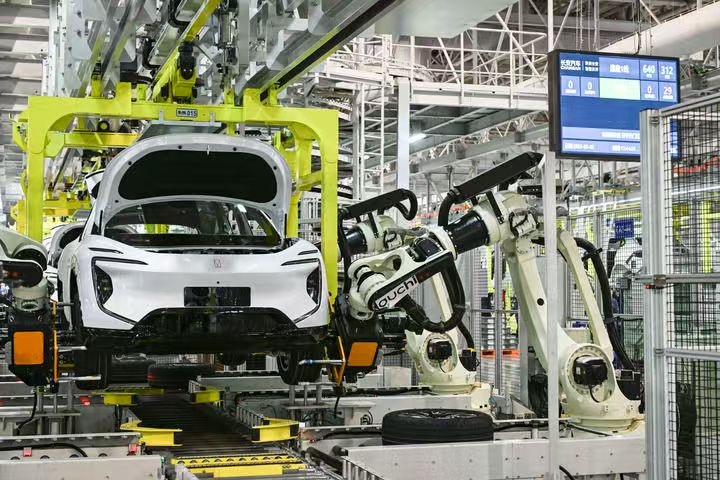 2025年3月6日在位于重庆的长安汽车数智工厂总装车间拍摄的自动化生产作业现场。新华社记者王全超 摄