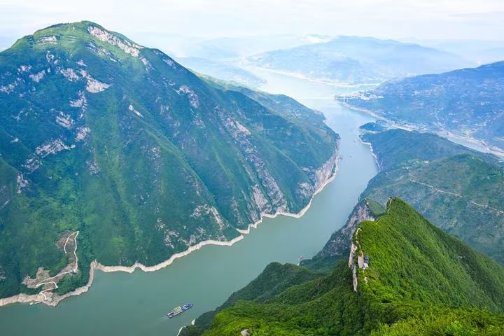 隆冬时节,渝鄂交界处的巫峡口,群山连绵、漫山红叶,长江如同一条绿丝带,穿越巫峡、奔向荆楚。这里的长江重庆段出境断面水质,已连续8年优于入境断面,一江碧水浩浩荡荡向东流。