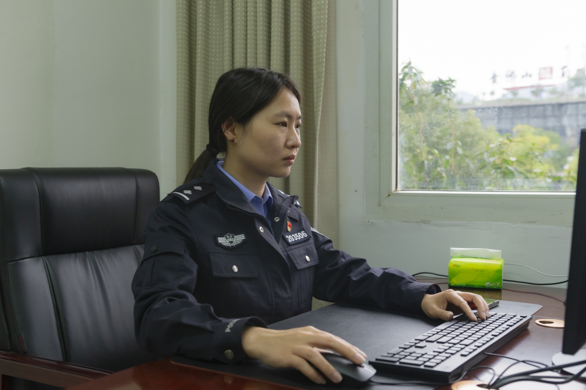 南川刑侦女警吴川娅在办公室梳理卷宗,专注开展刑侦内勤工作(南川区公安局供图)