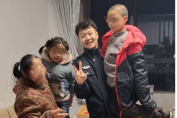 施力看望家庭困难的男孩(江津区公安局供图)