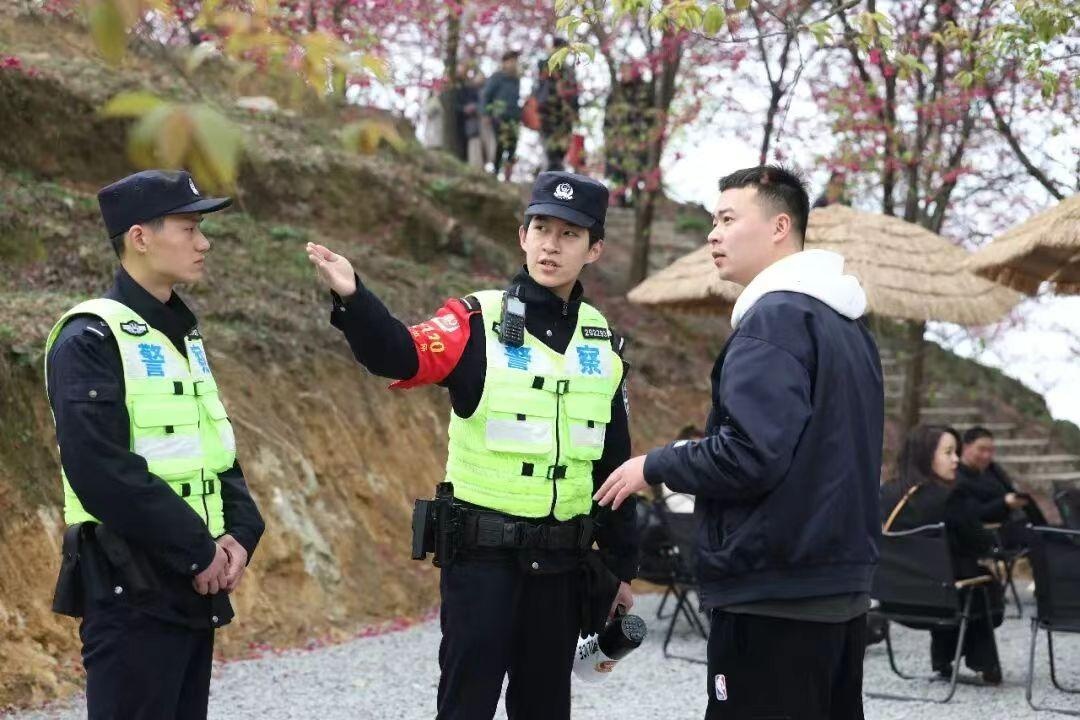 园区内,蔡家派出所执勤警力全程在岗在位,扛起一线安保主力军职责,以“定点值守+动态巡逻”相结合的模式,将警力精准布防在园区入口、核心赏花区、网红打卡点、餐饮服务区等人流密集区域,不间断开展徒步巡逻防控,最大限度把警力摆在群众看得见、找得到的地方。从为游客指路答疑、帮忙拍照取景,到寻回走失老人儿童、找回遗失的手机钱包,每一件群众“小事”都用心办好,让群众在沉浸式感受春日美好的同时,收获实实在在的安全感。