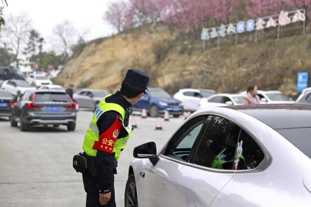 园区外,交管支队紧盯赏樱季交通保障痛点难点,提前对周边道路交通流量进行全面研判预判,量身定制专项交通保障方案,全力守护群众赏樱出行路畅人安。针对高峰时段车流集中、停车资源紧张的问题,交管支队优化调整交通组织,科学设置临时停车区域、单向通行路段、应急绿色通道,在园区周边主干道路、交叉路口、停车场出入口等关键点位,设置固定执勤岗与流动巡逻组,安排警力全时段定点值守、动态疏导,引导过往车辆规范停放、有序通行,严防长时间、大范围交通拥堵,确保园区周边道路交通安全、有序、畅通。樱花有期,守护不止。假日春光,穿梭的藏蓝身影与盛放的樱花相映成景,成为春日里一道别样的平安风景线。江津警方将始终坚守岗位、忠诚履职,用责任与担当守护群众的每一次春日出行,在此也提醒广大市民游客,合理规划出行时间与路线,自觉遵守交通规则,文明赏樱、安全出行,如遇紧急情况,请及时向身边的执勤民警求助。(来源:江津区公安局)